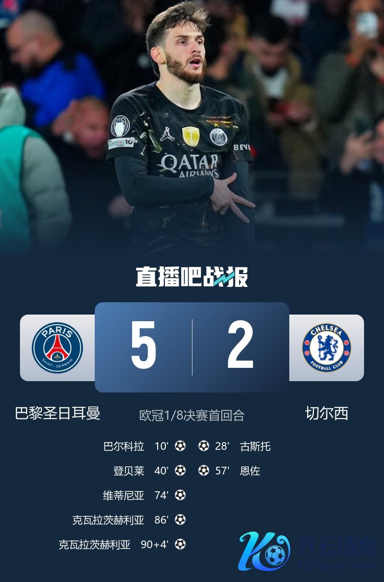 03月12日讯 欧冠1/8决赛首回合,巴黎5-2大捷切尔西。
