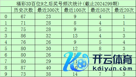 前三次百位号码9出现之后,其下期奖号分辨开出:4、9、4,出咫尺:低频区域、高频区域、低频区域,本期百位烧毁低频区域号码,排斥5码:01246。