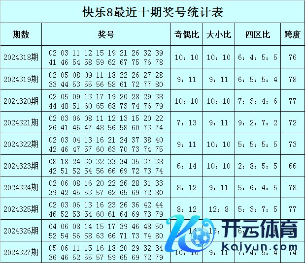 福彩情状8第2024327期开奖总结:05 06 11 15 16 18 20 29 32 34 36 46 52 55 57 59 65 69 72 79体育集锦,其中奖号奇偶比开出10:10,大小比开出9:11,四区比开出7:4:5:4,跨度开出74。