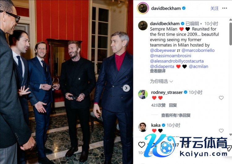 贝克汉姆写谈:“弥远的米兰。自2009年以来初次重聚……十分好意思好的夜晚,受Eyewear by David Beckham的邀请,在米兰城见到了我在米兰技术的老队友们。”