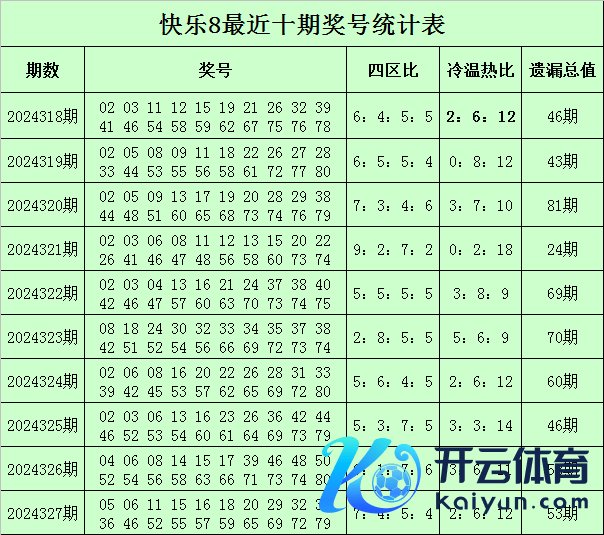 福彩本心8第2024327期开奖追想:05 06 11 15 16 18 20 29 32 34 36 46 52 55 57 59 65 69 72 79,其中奖号四区比为7:4:5:4体育录像/图片,冷温热码比为2:6:12,遗漏总值为53。