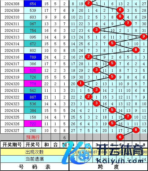福彩3D第2024327期最大跨度开出8,近期最大跨度波动较大,本期展望最大跨度在4-8区段出现,最大跨度怜惜45678,精选跨度6。