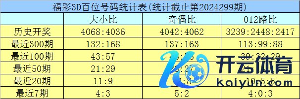 开奖回顾:福彩3D第2024299期奖号为:949。奖号样式开出组三,奇偶比开出2:1体育赛事直播,012路比为2:1:0,大小比为2:1。