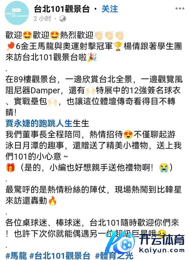 临了,官微还留心向诸君内地的国乒球迷发出邀请,竭诚期待他们有朝一日齐大概来一览台北的征象。