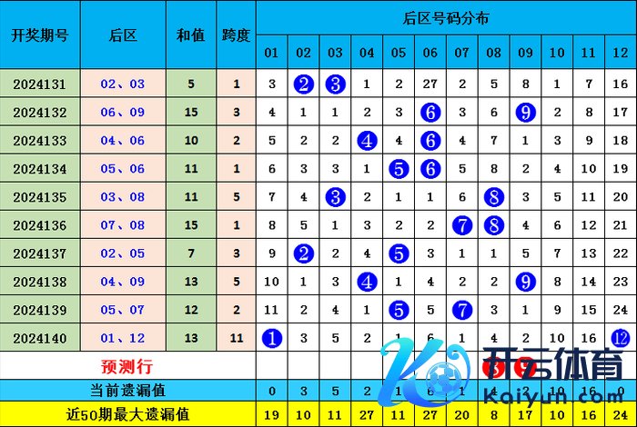 上期后区开出01 12