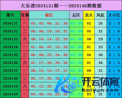 大乐透第2024140期奖号为:前区03 06 15 23 31,后区01 12;奇偶比4:1体育最新信息,大小比:2:3。